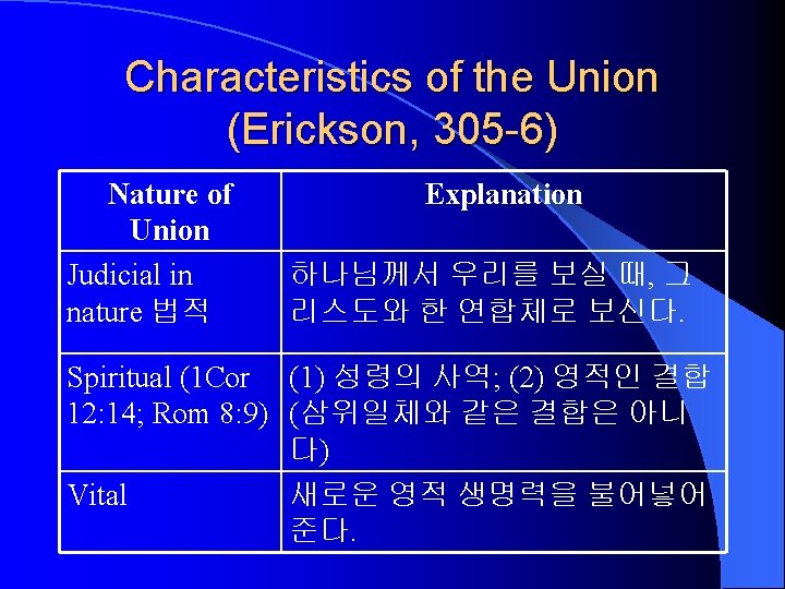 4. The Beginning of Salvation: Objective Aspects (1) Union with Christ 그리스도와의 연합 (2 Cor 5: 17; Eph 1: 3 -6; Col 1: 27; 2: 20; Gal 2: 20; Rom 6: 3 -5) (2) Justification 칭의 (3) Adoption 양자됨
