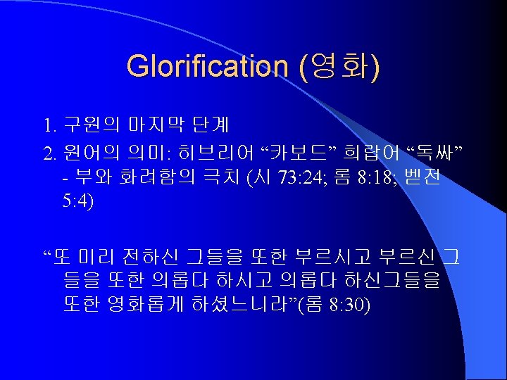 5. Continuation and Completion of Salvation l Sanctification l Perseverance l Glorification