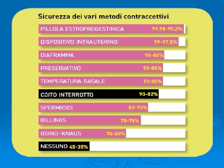 LA CONTRACCEZIONE La pillola Ø Il cerotto transdermico Ø Il diaframma e gli spermicidi Ø Il profilattico o preservativo Ø Il preservativo femminile Ø La pillola del giorno dopo Ø L’anello vaginale Ø La spirale Ø La sterilizzazione Ø Metodi naturali Ø