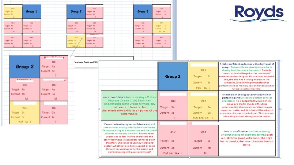 What should be there? • Target and current grade – in the lesson, how are you closing the gap? • Attendance. • Key group information - PP, Most Able, SEN, EAL, CLA. Pay particular attention to any students who are classified in more than one group. Annotations based on: • Literacy • Engagement • Challenge • Annotations must be clearly colour coded.