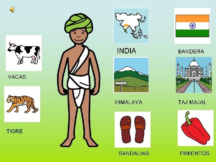 • LEER ES IMPORTANTE: • Los archivos originales de los que se obtienen los pictogramas publicados en esta Web se encuentran debidamente inscritos en el Registro de la Propiedad Intelectual, quedando RESERVADOS TODOS LOS DERECHOS sobre los mismos. La propiedad de éstos corresponde a la Diputación General de Aragón. • • Los recursos que se ofrecen en la web (pictogramas, imágenes o vídeos), al igual que los Materiales elaborados a partir de éstos, se publican bajo Licencia Creative Commons, autorizándose su uso para fines sin ánimo lucrativo siempre que se cite la fuente, autor y se compartan bajo la misma licencia. Autor pictogramas: Sergio Palao Procedencia: ARASAAC (http: //catedu. es/arasaac/) Licencia: CC (BY-NC-SA) Queda excluido de este permiso la edición o publicación de estos materiales dentro de publicaciones con fines comerciales. Para cualquier otro uso quedan rigurosamente prohibidas, sin la autorización por escrito de los titulares del “Copyright”, bajo las sanciones establecidas por las leyes, la reproducción total o parcial de estos materiales por cualquier medio o procedimiento, comprendida la reprografía y el tratamiento informático. • • • P. POINT REALIZADO CON MICROSOF OFFICE 2003. Autora del P. Point y de los pictogramas bandera de India, sandalias hindús y Taj Majal: Pilar Delgado: Trocitos de música de grabaciones realizadas en viajes de familiares.