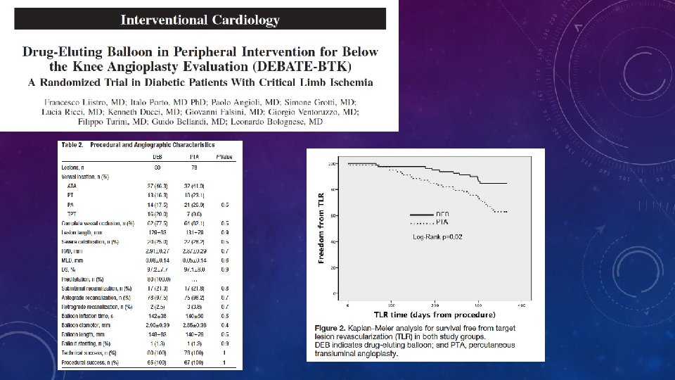 SUMMARY OF DES-BTK RANDOMIZED TRIALS 12 MONTH PATENCY Trial DES PTA/BMS Lesion length Achilles 80. 6% 58. 1% 25 -27 mm Yukon 80. 6% 55. 6% 31 mm Destiny 85. 2% 54. 4% 16 -19 mm JACC 2012, 60: 2290 -2295 JACC 2012, 60: 587 -91 JVS 2012, 55: 390