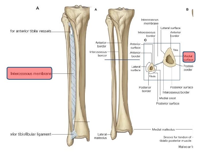 Fibula distal end (post. ) • Lateral malleolus • Fibular/proneal groove (tendons) • Malleolar fossa (ligaments)