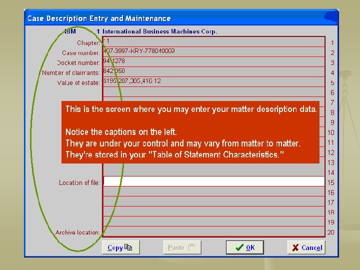 Summary 1. 2. 3. 4. After you’ve set up your tables, enter your clients. Then enter your matters. Read the Help screens or call CSP’s support lines to learn about the other fields on the client and matter screens. Once you’ve entered your matters, you’re ready to enter financial transactions.