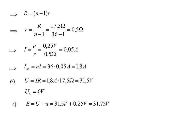 Un rezistor cu rezistenţa electrică R=17, 5Ω este conectat la un generator electric de curent electric continuu, a cărui cădere interioară de tensiune este u=0, 25 V. Dacă se scurtcircuitează rezistorul, se obţine un curent electric de n=36 ori mare. Calculaţi: a) intensitatea curentului electric; b) tensiunea electrică de la bornele rezistorului inainte şi după ce se scurtcircuitează rezistorului; c) tensiunea electromotoare. ( Fizică-400 de probleme si 40 de teste-grilă, D. Bacrău, Gr. Editorial Corint, București, 2003)