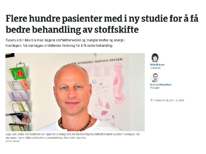 Kombinasjonsbehandling • Tillegg av liotyronin (T 3) eller animalsk thyreoideaekstrakt til levotyroksin (T 4) • Aktuelt når behandling med levotyroksin (T 4) ikke gir optimalt resultat • Klinisk erfaring viser at enkelte personer kan ha nytte av kombinasjonsbehandling, men det foreligger ikke evidens for at slik behandling er bedre enn levotyroksin (T 4) alene • Tillegg av liotyronin (T 3) bør seponeres dersom den ikke har effekt eller dersom det oppstår symptomer på hypertyreose.