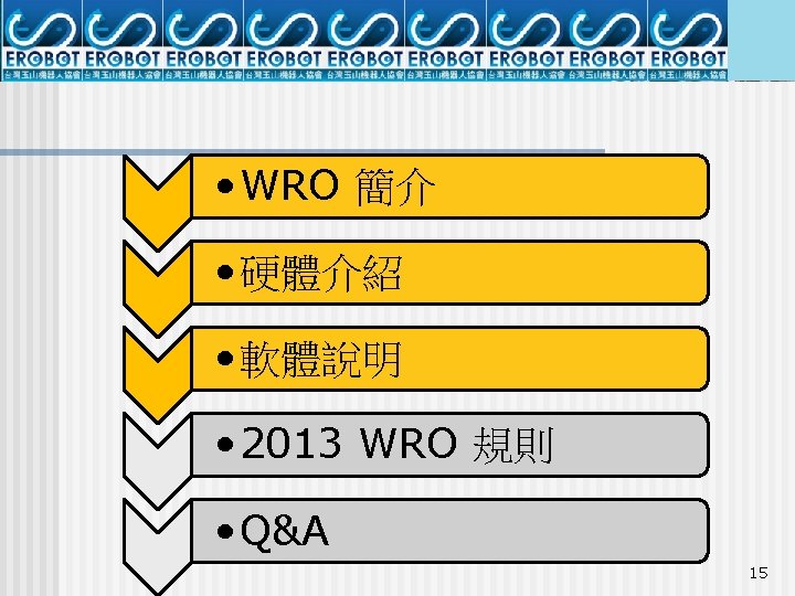 WRO 歷年影片 2007 WRO@ TAIWAN n 2012 WRO@ MALAYSIA n 9