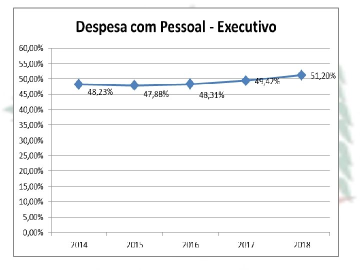 Despesa com Pessoal - Legislativo 5. 00% 2. 60% 2. 38% 2. 44% 2. 25% 2. 40% 0. 00% 2014 2015 2016 2017 2018