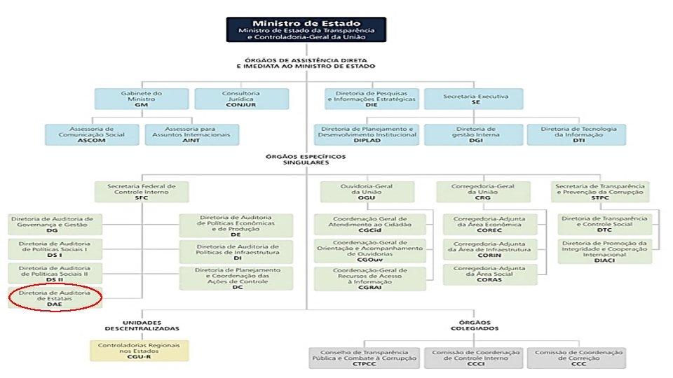 Diretoria de Auditoria de Estatais (DAE) Coordenações-Gerais de Auditoria de Estatais dos setores: ü Financeiro e de Desenvolvimento; ü Petróleo, Gás e Mineração; ü Logística e Serviços; e ü Energia e Tecnologia.