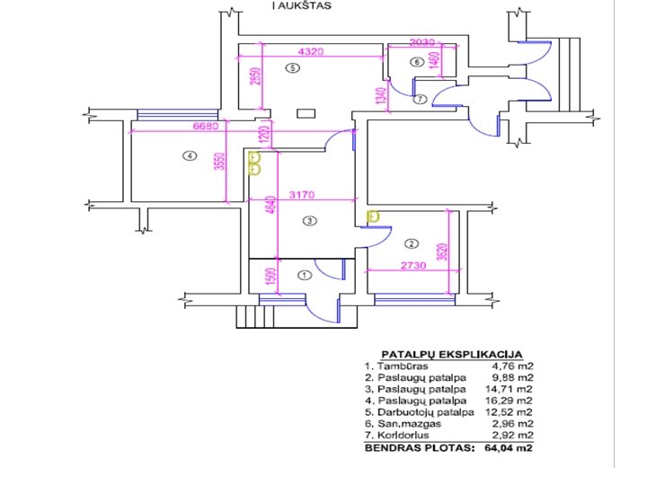 Pastato rekonstravimas ir paskirties keitimas į Paslaugų paskirtį