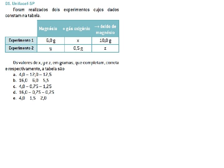 Exemplo: Lei de Lavoisier