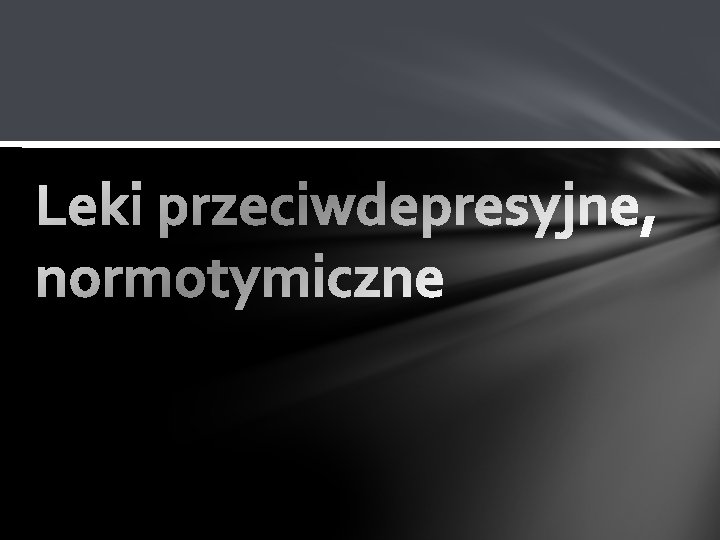 Ewolucja LAD BLOKERY WYCHWYTU ZWROTNEGO BLOKERY ENZYMÓW 1950 IMAO 1960 IMAO-B BLOKERY RECEPTORÓW TLPD NA-DA NA SRI MIA 1970 TRA 1980 NRI 1990 RIMA BUP SNRI SSRI ASRI NEF AGO MIR