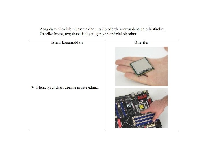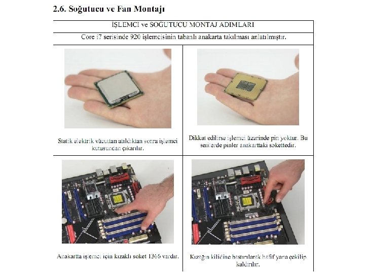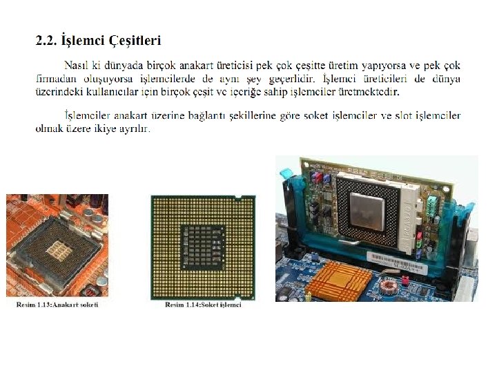 İşlemci Şekilleri İşlemciler anakart üzerine bağlantı şekillerine göre soket işlemciler ve slot işlemciler olmak üzere ikiye ayrılır.