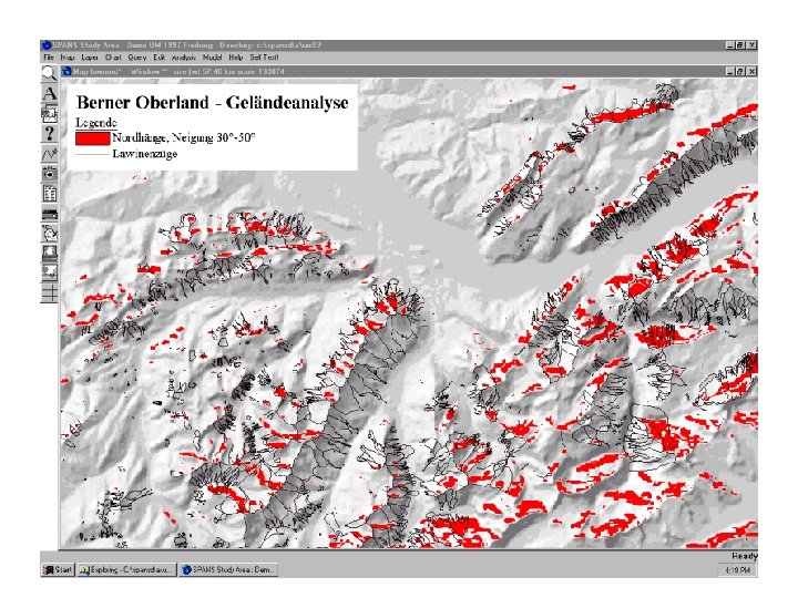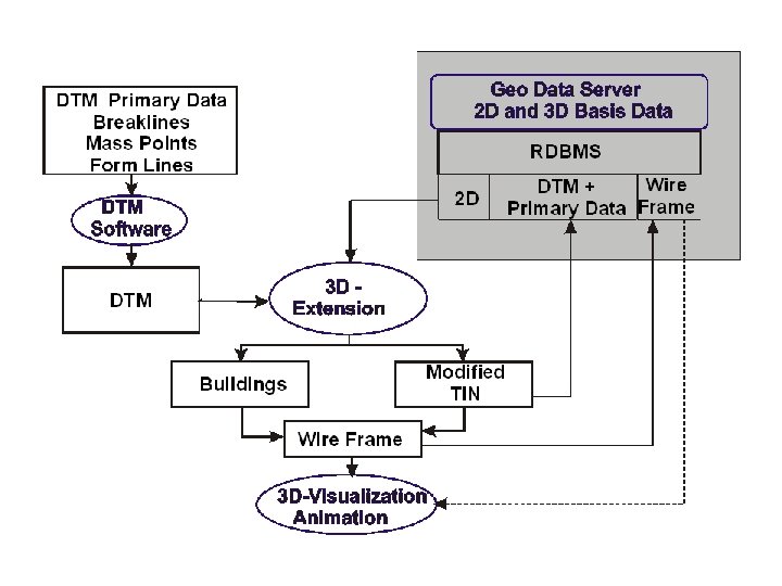 SIG= procesamiento en 2 -D • Casi todos los objetos geográficos se encuentran sobre el plano (superficie de la tierra). . pocas excepciones • Se trata de un “ 2 -D grueso” (thick 2 -D) • Añadir un valor z, a veces ayuda, pero. . . • Los cálculos normalmente se hacen sobre datos en 2 -D • La visualización es otra cosa: 3 D ayuda!