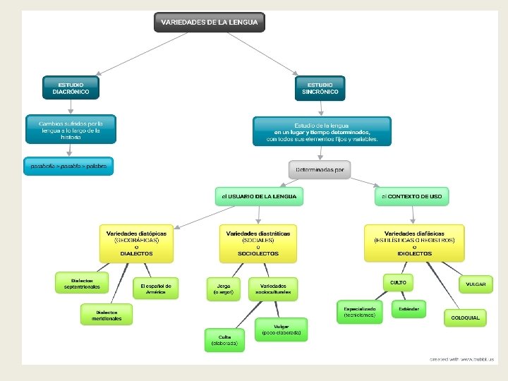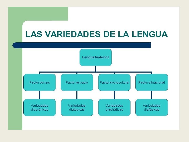 Lengua vs dialecto LENGUAS DIALECTOS Fuerte diferenciación Escaso nivel de diferenciación Diferencias orales y escritas Diferencias orales Se publican textos prescriptivos No se publican textos prescriptivos Tradición literaria Sin tradición literaria Da lugar a dialectos No da lugar a dialectos