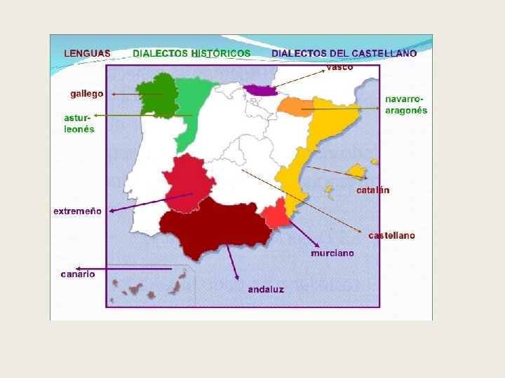 Los dialectos históricos del latín • Aragonés: restringido a las fablas en algunos valles del Pirineo • Astur-leonés: conjunto de hablas, llamadas bables, que se hablan en el antiguo reino de León