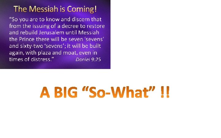 Read 9: 20 -23 “Listen Carefully!” “Get OFF FACEBOOK…!” “End. . Sin” Israel Gets it Together w/ GOD “Atone” MAKE IT RIGHT “Everlasting…” WOW! Scope=END TIMES “Prophetic…” Fulfill ALL PROPHECY “Annoint…” Someth. 2 do w/ TEMPLE G=Answ. Prayer! “I’ve gotta TWITTER 1 st”