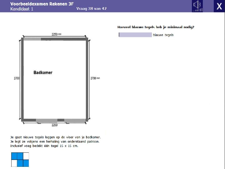 Voorbeeld examenvraag. De volgende vraag over de tegels in een badkamer is ook toe te passen als het gaat om tegels in een tuin.