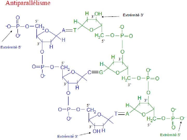 -L’ose: désoxyribose -Les bases: A, G, C et T -deux chaines de nucléotides : Une molécule de DNA est habituellement formée de 2 chaines ou 2 brins de polynucléotides. Les caractéristiques de ces 2 chaines : Elles sont dites -Hélicoïdales : Les 2 chaines de DNA présentent dans l`espace une configuration hélicoïdale. Elles s`enroulent autour d`un axe central imaginaire en formant une double hélice de 2 nm de diamètre. Le pas de l`hélice fait 3. 4 nm et contient 10 paires de nucléotides. la distance séparant 2 nucléotides est de 0. 34 nm. K Sifi