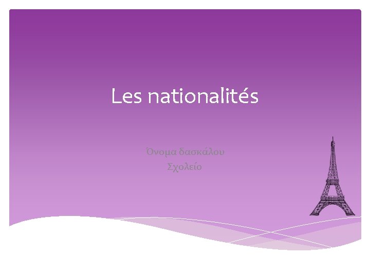 Les adjectifs de nationalité Règle générale : au masculin on ajoute un –e Ex. américain - américaine Adjectifs en -en ou en –on, doublent leur –n au féminin. Ex. européen – européenne Adjectifs en –e au masculin pas de changement au féminin Ex. russe – russe