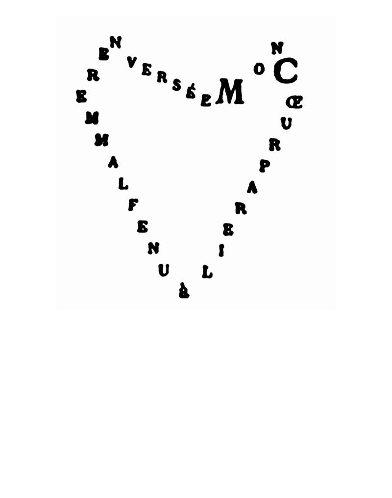 Reconnais-toi Cette adorable personne c’est toi Sous le grand chapeau canotier Oeil Nez La bouche Voici l’ovale de ta figure Ton cou exquis Voici enfin l’imparfaite image de ton buste adoré vu comme à travers un nuage Un peu plus bas c’est ton coeur qui bat