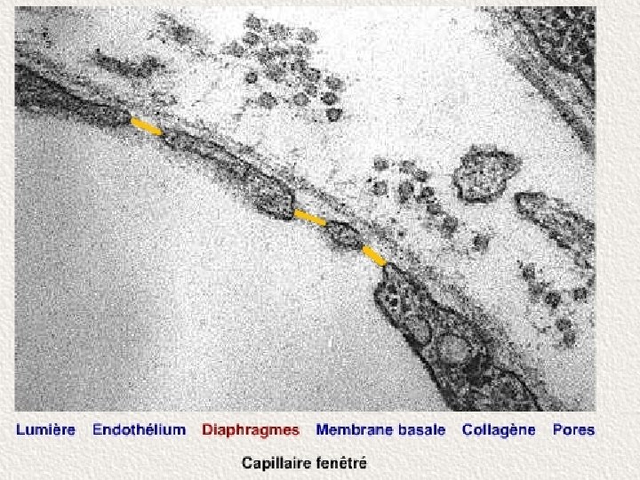 Les capillaires en microscopie électronique � Les capillaires continus � Les capillaires fenêtrés � Les capillaires discontinus (sinusoïdes)