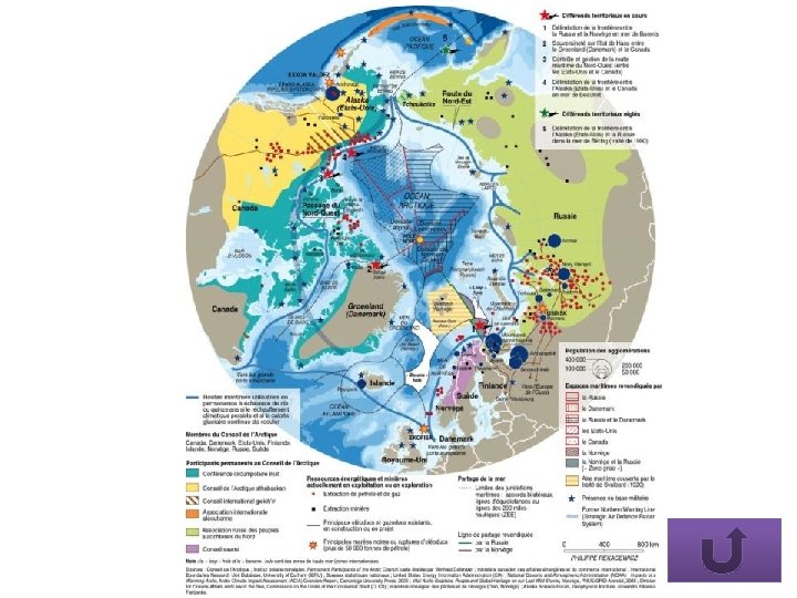 Décodage du TITRE c Conforme à la fois à ce que les autorités russes déclarent sur leur stratégie de défense depuis 2000 (Concept de sécurité nationale de la Fédération de Russie) et aux théories d’une Russie qui regarde vers l’Orient. c Référence au basculement de la diplomatie russe depuis l’arrivée de Poutine au pouvoir. c Constat pragmatique la superpuissance héritée de l’époque soviétique a vécu et qu’un condominium à égalité avec les Etats. Unis est illusoire. c Lancement d’une politique multivectorielle de restauration de la puissance, en s’appuyant sur une base régionale c La construction iconographique vise à démontrer la thèse de la multivectorialité par l’utilisation de flèches multiples qui ne sont pas des flux mais une représentation mentale de cette thèse.