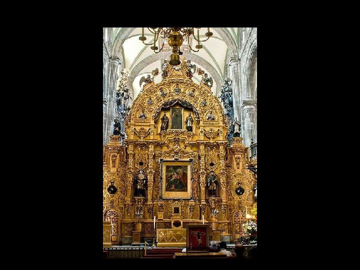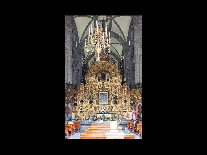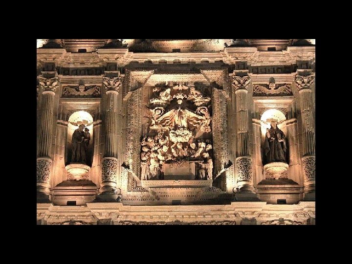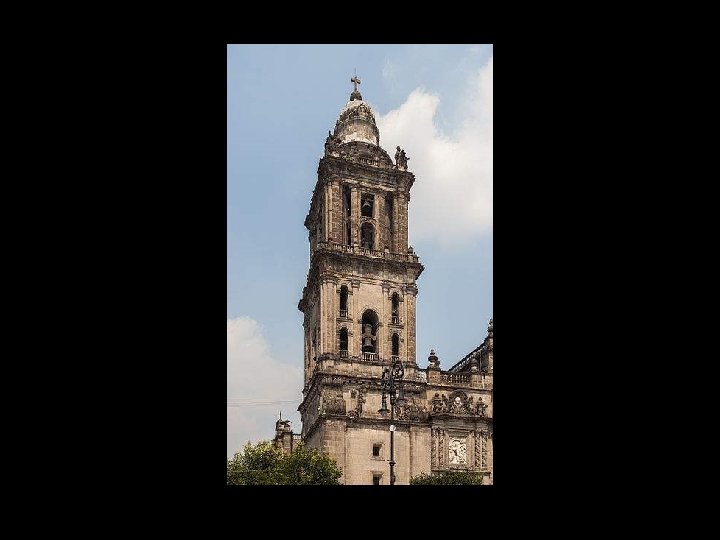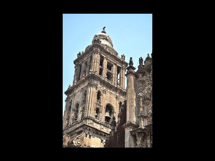 Cathédrale Métropolitaine La Cathédrale Métropolitaine de Mexico, située sur la place centrale de Mexico, est la plus grande cathédrale d'Amérique. Elle a été construite dans le style d'architecture baroque espagnole et comprend une paire de tours néoclassiques de 64 m qui portent dix-huit cloches. Trois ans après la conquête espagnole de la cité aztèque de Tenochtitlán, Hernan Cortés entreprend, sur ces lieux, la construction d'une église. Elle est convertie en cathédrale par Charles Quint et le pape Clément VII suivant la bulle du 9 septembre 1530 et obtient le titre de « métropolitaine » en 1547, sur décision de Paul III. Cette cathédrale devient rapidement trop étroite et est démolie en 1571. La construction de la nouvelle cathédrale est décidée par le vice-roi Martín Enríquez de Almanza et l'archévêque Pedro Moya de Contreras qui posent la première pierre la même année. Elle sera consacrée en 1667. Une chapelle latérale, le Sagrario, de style churrigueresque mexicain, est construite entre 1749 et 1769. Les éléments finaux, deux clochers et un dôme central, œuvres de l'architecte néoclassique espagnol Manuel Tolsá, complètent le tout en 1813.