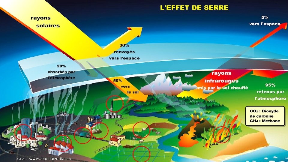 CONCENTRATION DES GAZ À EFFET DE SERRE • La concentration de dioxyde de carbon augmente de 40% à cause de l'activité humaine. • Les concentrations actuelles des trois gaz à effet de serre: CO 2, méthane et protoxyde d’azote • Ces changements sont sans précédent par rapport aux 22. 000 dernières années.