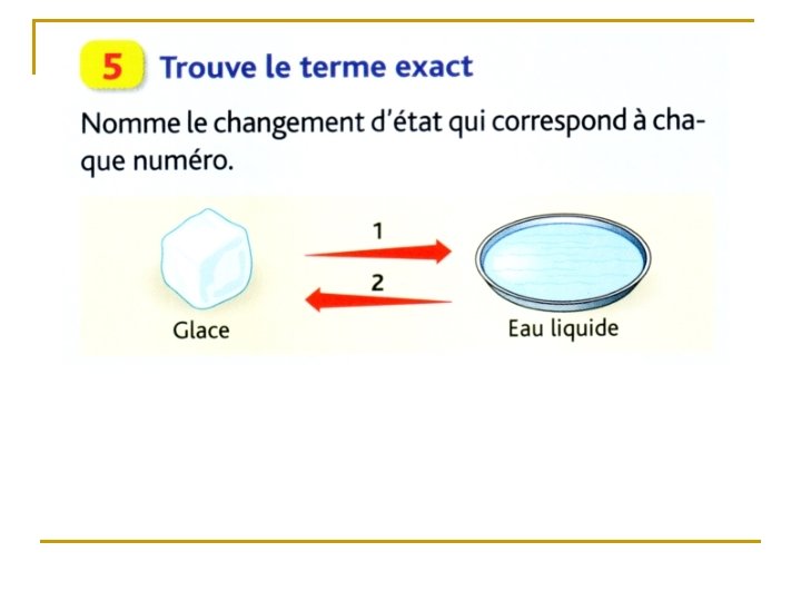 I Les états de l’eau dans la nature Légende Changement d’état État : solide-liquide-gazeux paperboard Changement d’état : Solidification, fusion, liquéfaction, vaporisation