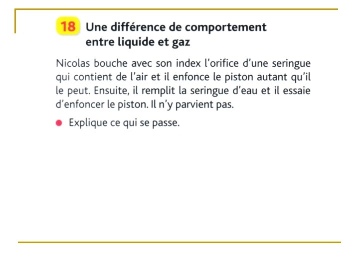 Remarque Les compressibles!? Lesliquideset etles lessolidessont-ils sont incompressibles Eau Seringue
