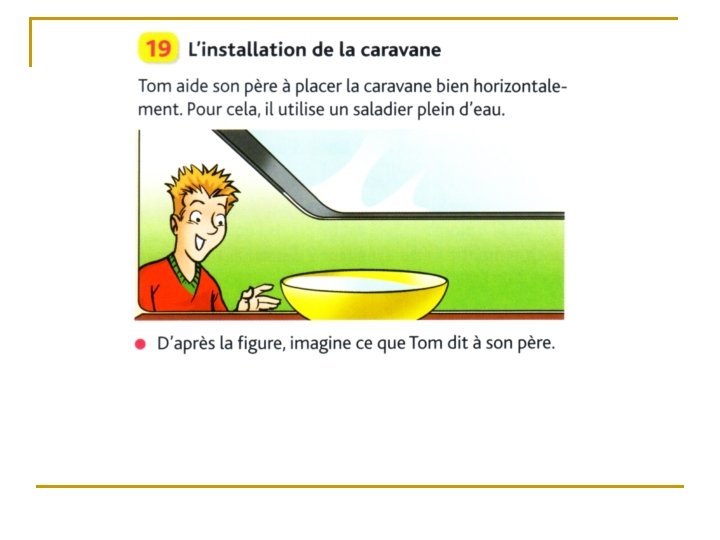Conclusion Que dire de la forme d’un liquide et d’un solide ? Un liquide prend la forme du récipient. Un solide a une forme propre. Que dire de la surface d’un liquide ? La surface libre (en contact avec l’air) d’un liquide est horizontale.