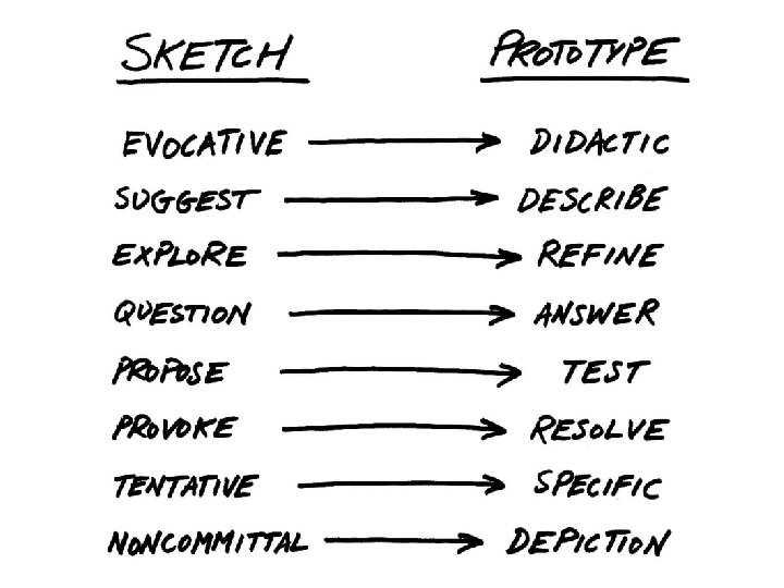Attributes of a Sketch Quick Timely Inexpensive Disposable Plentiful Clear vocabulary Minimal Detail Appropriate Degree of Refinement Suggest & explore rather than confirm Ambiguity