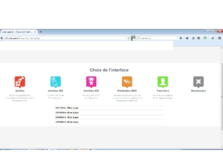 Une Réforme qui repose sur une plateforme dite Système Informatique Distribué d’Evaluation en Santé • SIDES est une plate-forme numérique nationale distribuée dans toutes les Facultés, dédiée à l'évaluation en ligne. • constitue une base de données docimologiques nationale d'entraînement ouverte depuis novembre 2013. • il s'agit d'un outil facultaire destiné à la réalisation d'examens validant informatisés, dans les UFR de médecine et d'un outil destiné à la préparation des étudiants aux ECNi.