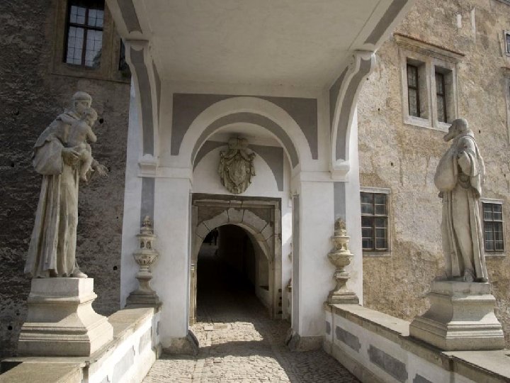 1ère cour Le château et le complexe du château sont reliés à la ville par la Porte Rouge. Ce portail, tout comme l' escalier du château, vous amènera dans la 1ère cour. Cette vaste zone servait autrefois de zone agricole du château ainsi que d’enclos pour les animaux. La cour est bordée par une série de bâtiments : le centre d'information du château, le Lapidarium, la pharmacie. . .