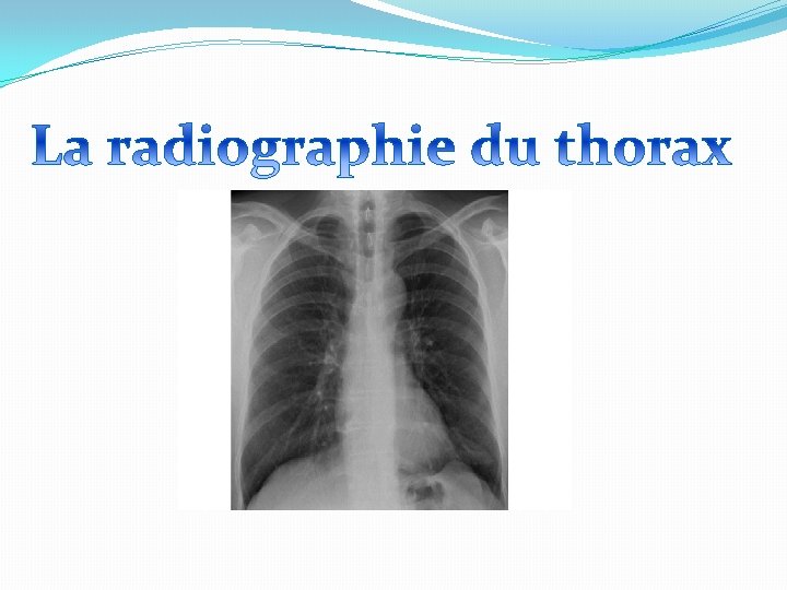 -La radiographie pulmonaire reste un document indispensable dans tout bilan clinique quel qu’il soit et apporte le plus souvent des données essentielles au diagnostic. Sa réalisation technique est simple mettant en application des rayons X.