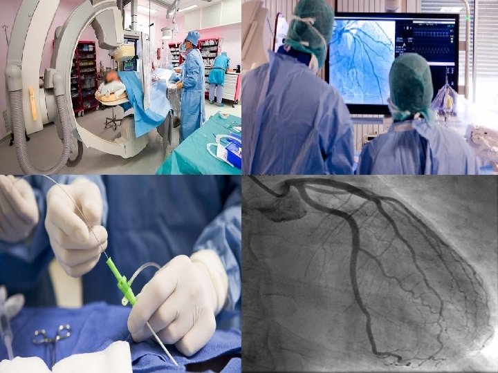 Coronarographie �La coronarographie est une technique d‘imagerie médicale utilisée en cardiologie pour visualiser les artères coronaires (gauche et droite) en cas de suspicion de maladie coronarienne. �C'est un examen médical complémentaire invasif qui utilise la technique de radiographie aux rayons X(radioscopie) et l'injection d'un produit de contraste iodé
