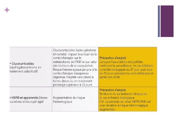 + Risque hémorragique sous AVK Type d’acte Niveau de risque Infiltrations périarticulaires 3 Ponction infiltration simple des articulations périphériques hors coxo fémorales 3 Infiltration canalaire superficielle 3 Biopsie des glandes salivaires accessoires 3 3: risque hémorragique faible