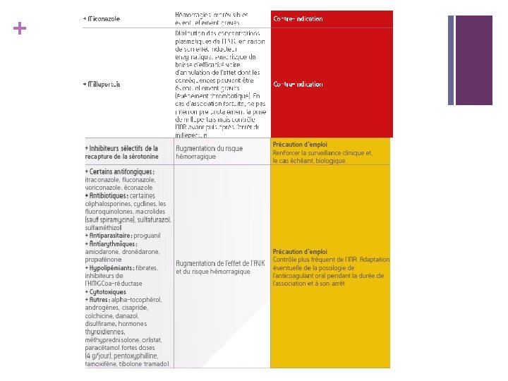 + Différents types d’anticoagulants • He parines de bas poids mole culaire et apparente s (doses pre ventives) n anticoagulants oraux n (acenocoumarol, n apixaban, • danaparoide sodique, n dabigatran, • desirudine, n fluindione, n phenindione, n rivaroxaban, • fondaparinux, n tioclomarol, • nadroparine calcique, n warfarine) • dalteparine sodique, • enoxaparine, • reviparine, • tinzaparine)