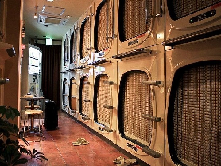 Les hôtels capsule au Japon sont une solution pour ceux qui ont manqué le dernier train de la nuit, ont bu et ne veulent pas conduire ou n’ont pas trouvé de chambre dans un hôtel. Un hôtel capsule est une petite enceinte de 2 mètres carrés qui inclut un lit et une télévision pour environ 30 dollars la nuit. La densité des hôtels que incluent ce type de capsules est énorme, et on peut voir des rangées et des rangées de capsules empilées les unes sur les autres comme si c’était un e ruche. Bien que ça puisse paraitre le contraire, les capsules sont assez propres et l’endroit est assez confortable pour passer une nuit sans problèmes. Dans beaucoup de ces hôtels on pait avec des pièces à des machines automatiques ainsi on n’a même pas besoin d’entamer une conversation avec des réceptionnistes.