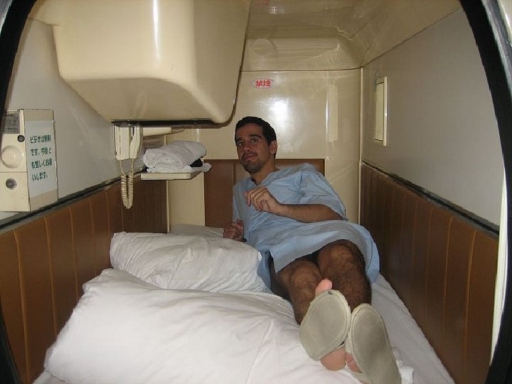 A capsule hotel is a hotel where you get a small locker to put your things in, and this tiny capsule to sleep in. Pretty awesome, and uniquely japanese. It's $30/night, and they have free shower/bath, but tv, radio, and other things cost a bit extra.