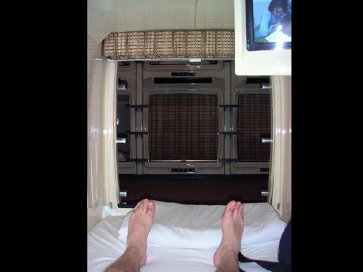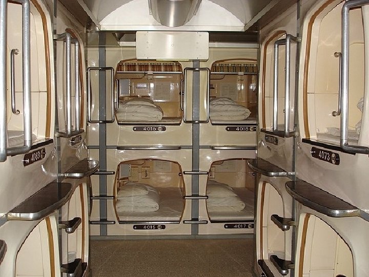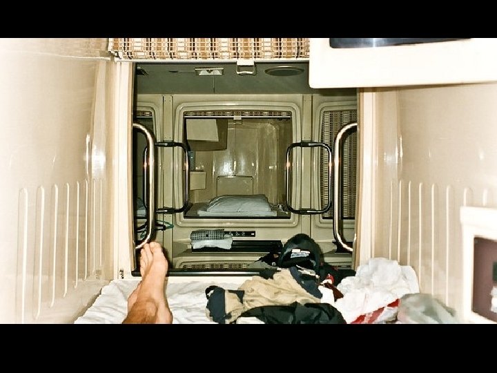 Le service de l’ hôtel inclut une armoire pour mettre ses affaires, une petite capsule pour dormir et l’utilisation de douches , sanitaires, radio et TV pour un tarif d’environ 30 dollars.