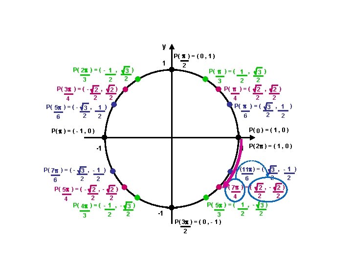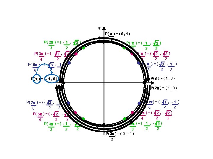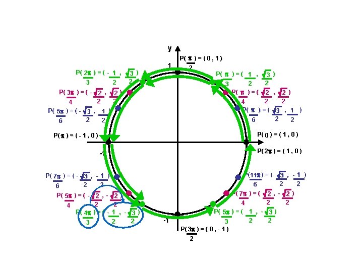 Coordonnées équivalentes du cercle trigonométrique Ex. : Déterminer les coordonnées du point correspondant sur le cercle trigonométrique. Exprimer la valeur exacte lorsque c’est possible. a) 7 6 rad
