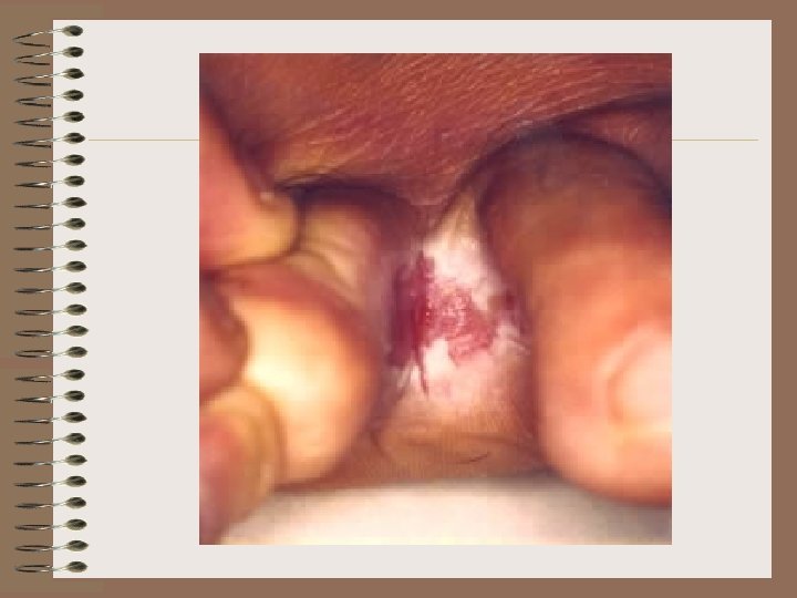A- Infections superficielles • Intertrigos => traitement – Lavages biquotidiens avec antiseptique – Séchage soigneux ++++ – Pas de pommades => macération – Spray-poudre