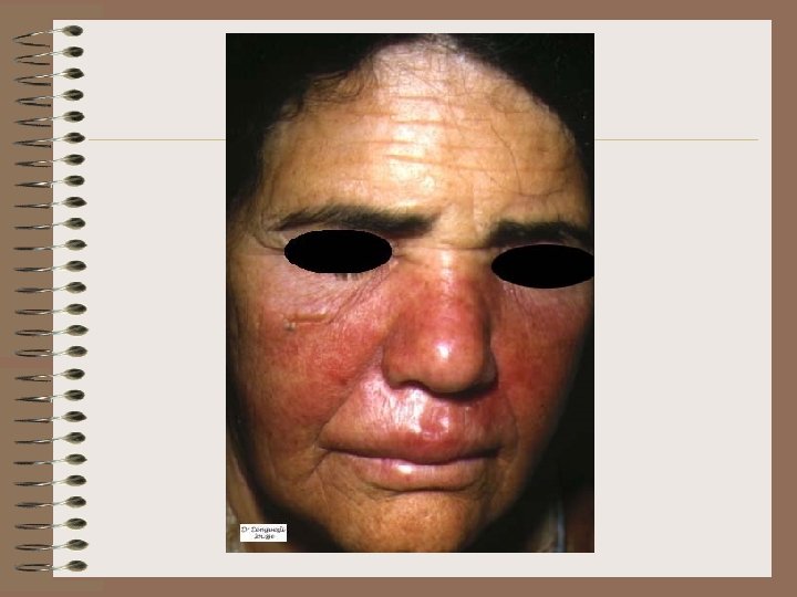B- Infections dermo-épidermiques 1 - Erysipèle : Dermo-épidermite aiguë localisée Streptococcus pyogenes Favorisé par : diabète, surpoids, stase veinolymphatique, traumatismes Peau infiltrée, rouge, chaude, douloureuse, luisante + ganglions + fièvre Face ou membres