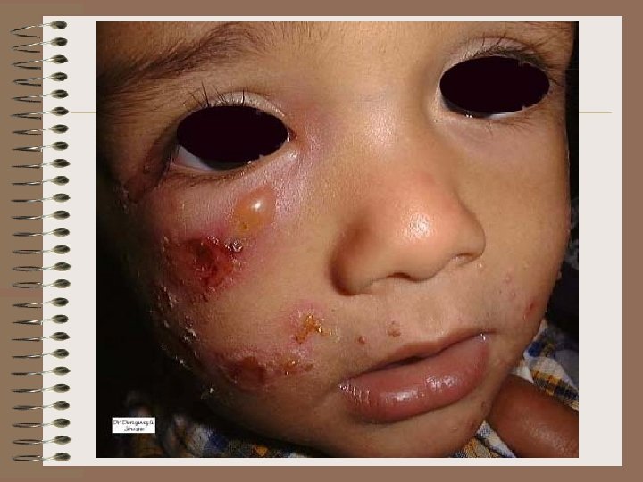 • Impétigo => Traitement • • Antisepsie Eviction scolaire, éviction des contacts +++ Pénicilline M (Orbénine*, Bristopen*) Ou Synergistines (Pyostacine*)