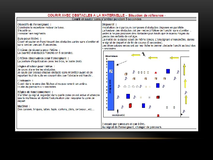 UN PARCOURS ORIENTÉ ACTIVITÉS ATHLÉTIQUES Le parcours orienté est à penser comme un ensemble de modules/ateliers qui vont permettre aux enfants de travailler la course, le saut et le lancer. Les rotations sont régulées par l’enseignant.