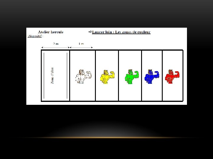 Lancer – Les balles brûlantes Dispositif Deux équipes s’affrontent : chacune a un camp et différents objets à lancer (balles, anneaux, sacs de graines…). Le but pour chaque équipe est de renvoyer le maximum d’objets dans la zone bleue « froide » , au-delà du camp adverse pour qu’il en reste le moins possible dans sa zone. Critères de réussite Regard orienté vers la zone à atteindre. Lancer adapté à l’objet et au but à atteindre (force, hauteur et trajectoire). Latéralisation et bras de lancer identifié. Position des épaules (rotation). Variables Distance des zones « froides » , nombre d’objets, cibles ou buts dans les zones « froides » , durée de jeu (entre 1 et 2 minutes). Variantes Une seule équipe : les enfants doivent envoyer tous les objets dans la zone « froide » située de l’autre côté. Positionner un filet ou un drap pour que les lancers se fassent par-dessus (lancer haut pour lancer loin).
