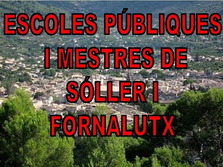ESCOLES I MESTRES DE 1900 -1901 A 1923 -1924 SÓLLER ESCOLES PÚBLIQUES DOCUMENTADES 1900 -1924 Unitària de nins núm. 1 Unitària de nins núm. 2 Unitària de nines Unitària de nins de Biniaraix Unitària de nines de Biniaraix Unitària de nins del Port de Sóller FORNALUTX Unitària de nins Unitària de nines