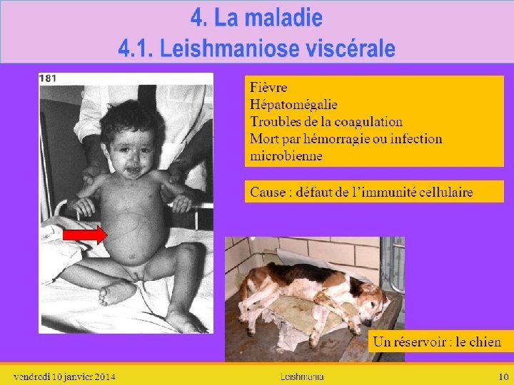 La Leishmaniose Méditerranéenne à Leishmania infantum qÉvolution de la LV non traitée Ø Amaigrissement Ø Hémorragies Ø Cachexie Ø Infections intercurrentes Ø Décès